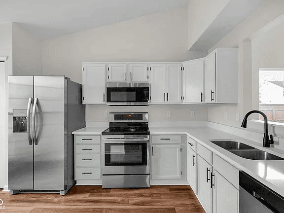 Welcome home to this LIKE NEW, FULLY REMODELED 3-bedroom, 2-bath gem in Pike Township, where modern updates meet MOVE-IN-READY convenience! Located in the established Lakeside Manor West community, this beautifully updated home has been thoughtfully renovated from top to bottom in 2025, offering peace of mind and contemporary style throughout! Step inside to discover fresh paint, new flooring, and all-new light fixtures that create a warm, bright, cohesive feel across the home. The completely remodeled kitchen is a true showstopper, featuring freshly installed quartz countertops, newer appliances, updated cabinetry, and modern finishes-perfect for everyday living and entertaining alike! Both bathrooms have been fully renovated with new ceramic tile, updated fixtures, a new tub, and brand new quartz countertops, delivering a unique, spa-like experience. Major mechanical updates provide peace of mind, including a new roof with dimensional shingles, a new HVAC system with heat pump, 2 year old electric water heater, and extensive electrical updates with all-new outlets and switches, newer washer & dryer, as well as new handles, and hinges - all completed in 2025. The garage has been insulated and finished, including a new garage door opener, and adds valuable functional space. Exterior improvements such as soffit and fascia replacement, fresh paint, fence repairs, and refreshed landscaping complete the package! Enjoy low annual HOA dues and professional management, plus a convenient Indianapolis location close to shopping, dining, parks, and commuter routes. This home truly checks every box-stylish, efficient, and completely updated-all that's left to do is for you to move in and enjoy!