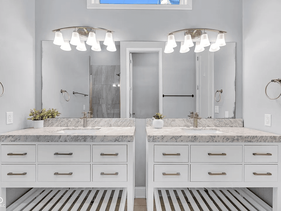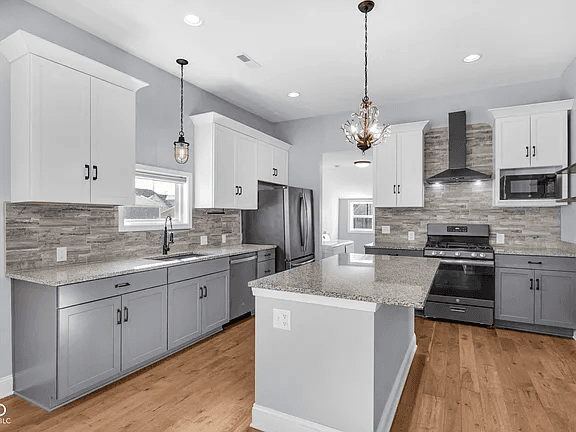 Welcome to this beautifully updated home in the heart of the highly sought-after Bates-Hendricks historic neighborhood, just minutes from downtown Indianapolis! Would make an awesome home or short-term rental, walkable to downtown, has previous use as an STR. Perfectly positioned with downtown skyline and park/greenbelt views, this stunning 2-bedroom, 2.5-bath home blends historic charm with modern updates and thoughtful design. Inside, you'll immediately notice the soaring 10-foot ceilings and tall doorways that create an open, airy feel throughout the home. The updated kitchen features modern finishes, stylish cabinetry, a large center island, and ample space for cooking and entertaining. The guest half bathroom has been tastefully updated, along with refreshed flooring throughout that adds warmth and character to the home. Each of the two spacious bedrooms features its own private, updated en-suite bathroom, offering comfort and privacy that's perfect for guests, roommates, or a luxurious primary retreat. The closets have been thoughtfully upgraded with custom closet systems, maximizing storage and organization. Step outside to enjoy your fully fenced backyard, providing a private outdoor space ideal for relaxing, entertaining, or letting pets play. Whether you're enjoying quiet evenings at home or taking advantage of the nearby parks, trails, and vibrant downtown dining and entertainment, this location offers the best of urban living. With historic character, modern updates, skyline views, and a prime Bates-Hendricks location, this move-in-ready home is a rare opportunity in one of Indianapolis' most beloved neighborhoods!
